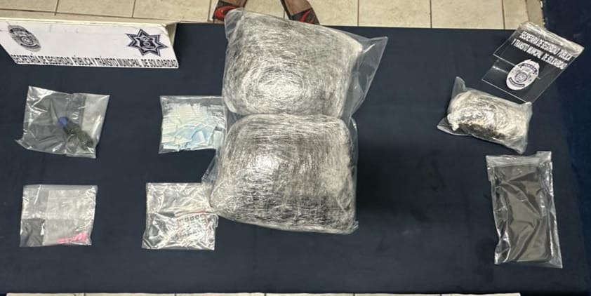 Oficiales del grupo Águilas de Reacción de Tránsito, detuvieron a Brandon “N” de 29 años de edad, originario de Guadalajara, en posesión de 3 paquetes con posible marihuana, 41 envoltorios con lo que parece cocaína, 1 bolsa con cuadros de papel al parecer LSD y 1 bolsa con pastillas tras marcarle el alto cuando conducía un auto habilitado como taxi infringiendo el artículo 97 del Reglamento de Tránsito al llevar los cristales cubiertos. Asimismo, elementos de la Unidad Canina brindaron apoyo durante la revisión del vehículo y la detención del conductor.