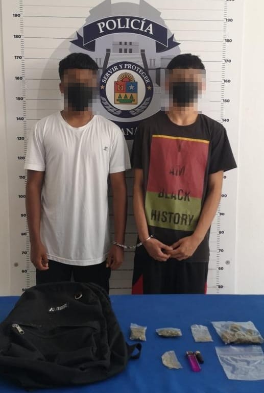 Oficiales de la Policía Quintana Roo Benito Juárez lograron la detención de dos menores que se identificaron como J.O.M.L. de 16 años y A.G.A.B. DE 16 años de edad, por el delito contra la salud.