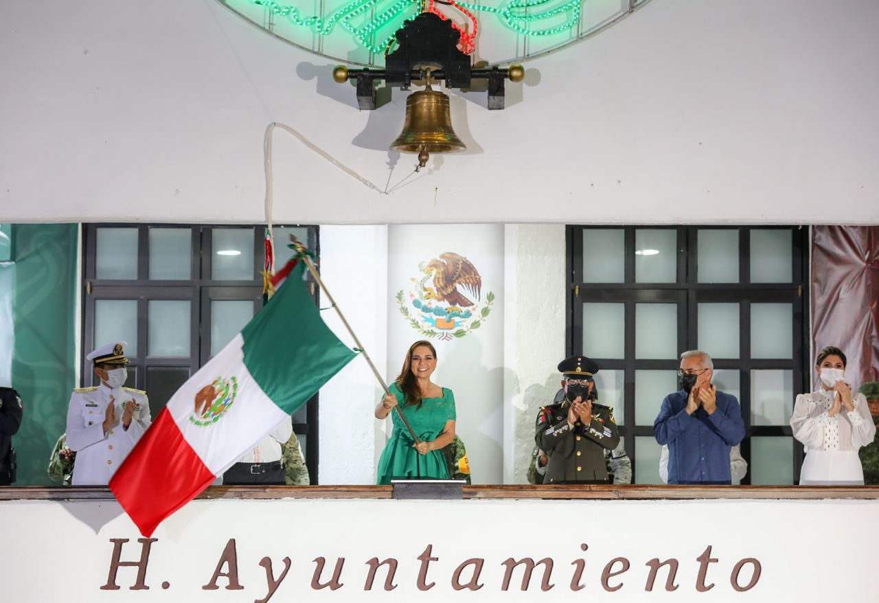 “¡Viva México!, ¡vivan los héroes que nos dieron patria!, ¡viva Hidalgo!, ¡viva Morelos!, ¡viva La Corregidora!, ¡viva Allende!, ¡viva Aldama!, ¡viva Guerrero!, ¡viva nuestra Independencia!, ¡viva Cancún!, ¡viva Quintana Roo!”, aclamó, al tiempo que ondeó el Lábaro Patrio tricolor e hizo repicar la campana del Palacio Municipal, como lo hiciera en esa fecha el Padre de la Patria, Miguel Hidalgo y Costilla.