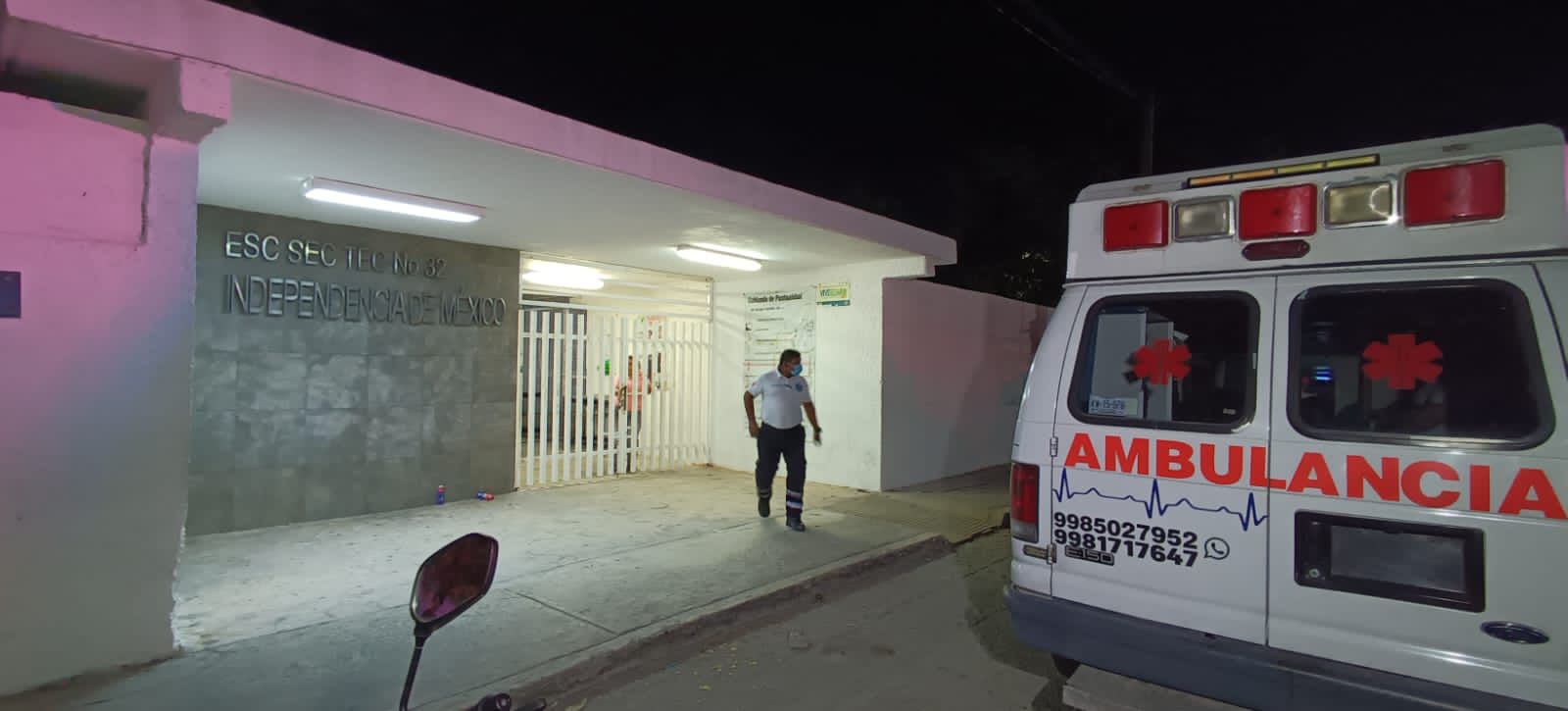 CANCÚN.- Un alumno murió en la escuela secundaria técnica 32 “Independencia de México” en el fraccionamiento Hacienda Real del Caribe en la región 203, de Cancún; de manera preliminar se informó que fue un paro cardiaco.
