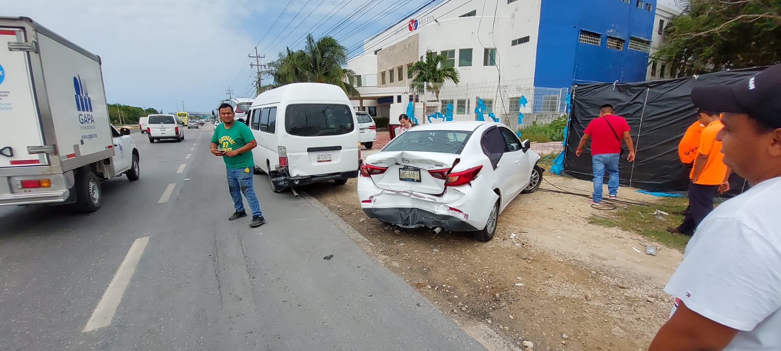 Playa del Carmen.- Por ir a exceso de velocidad, un grupo de extranjeros en una camioneta chocó por alcance contra un automóvil, que proyectaron contra otros dos vehículos, en el bulevar Playa del Carmen, casi frente al colegio Weston.