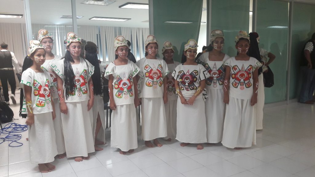CANCÚN, Quintana Roo.- Estudiantes de secundaria, recorren el mundo para enaltecer la Cultura Maya y gastronomía, con sus representaciones artísticas, son pocos los privilegiados que forman parte de Los Niños Mayas de Cancún, requieren de un buen promedio para ingresar al grupo, ya que no pueden descuidar su formación académica.