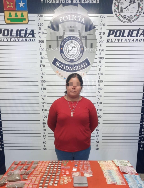 La mujer coincidía con las características reportadas al número de emergencias 911, como presunta vendedora de droga, dijo responder al nombre de Thalia “N”, de 25 años de edad, originaria de Campeche, le aseguraron 17 bolsas con mariguana, 49 dosis con sustancia a determinar, 52 de cocaína en polvo, 18 de LSD y 11 bolsitas con crack.