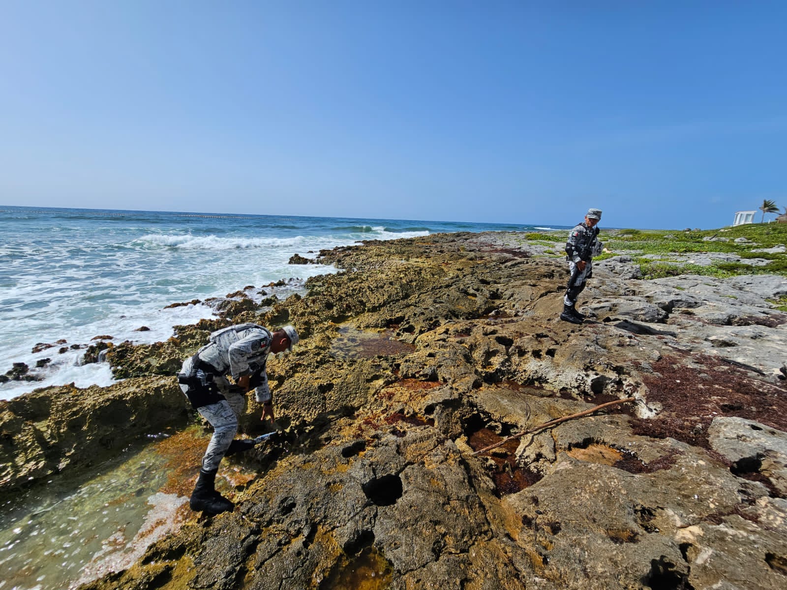 El hallazgo se registró cuando los guardias nacionales realizaban un recorrido de inspección en el lugar, cuando se percataron de que, entre las rocas y el sargazo de la playa había un paquete rectangular, emplayado con cinta transparente.