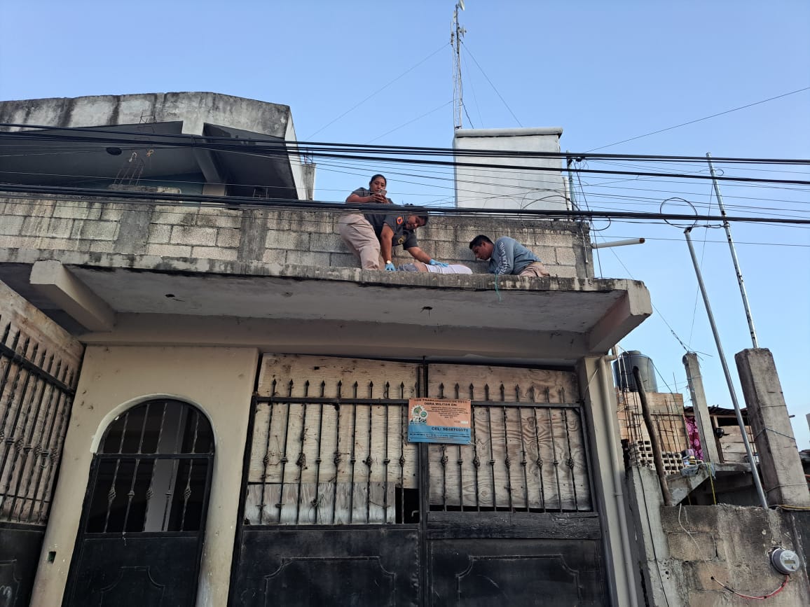 Paramédicos de la cruz Roja y personal de Protección Civil arribaron al lugar y se encargaron de valorar a este hombre y colocarlo en una camilla, para bajarlo del techo y subirlo en una ambulancia, con quemaduras de primer y segundo grado.