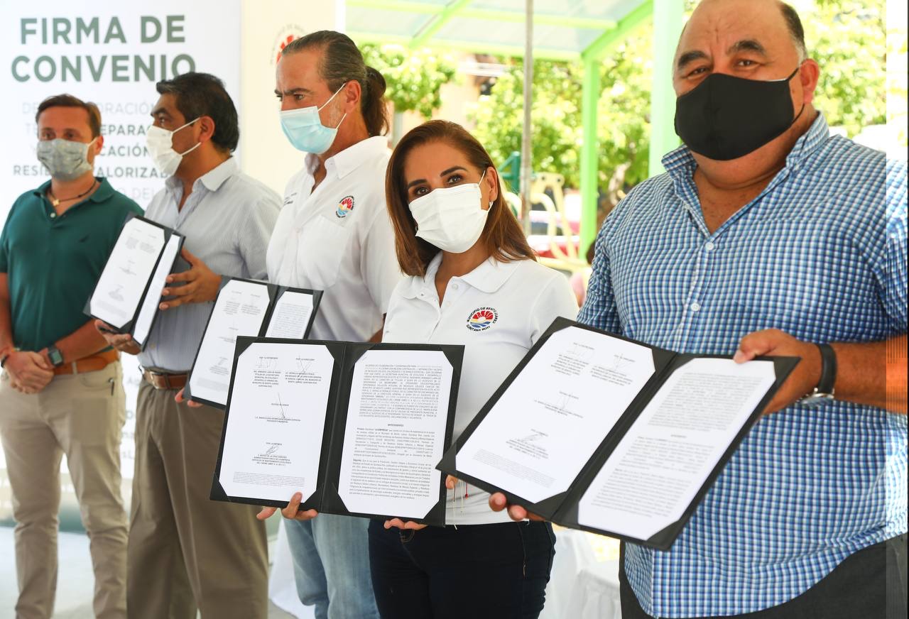 Cancún, Q.R. a 28 de agosto de 2021.- Como parte de los esfuerzos interinstitucionales encaminados a fomentar el cuidado del medio ambiente, autoridades del Ayuntamiento de Benito Juárez firmaron un convenio de colaboración en tema de separación y clasificación de residuos valorizables y presentaron el Programa Ciudadano “Recapacicla”.