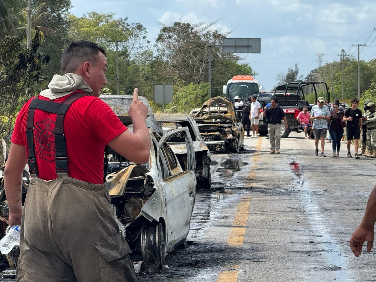 Ataque armado provoca quema de vehículos en carretera Cancún–Mérida, indagan posible vínculo con grupos criminales