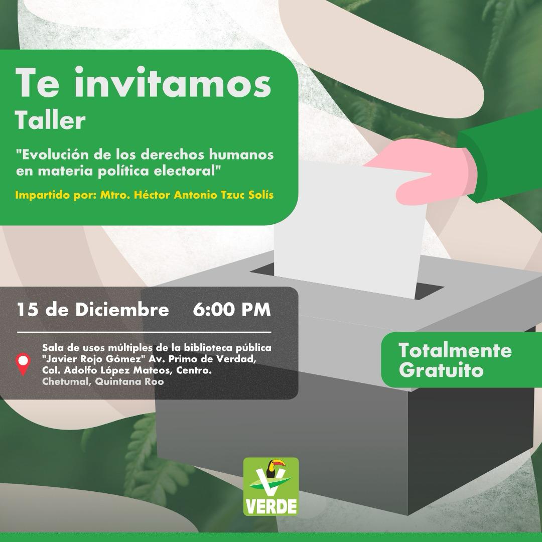 CHETUMAL.– El dirigente del PVEM Quintana Roo, Renán Sánchez Tajonar, invitó a la familia verde, militantes y simpatizantes del partido al próximo taller denominado “Evolución de los derechos humanos en materia político electoral”.
