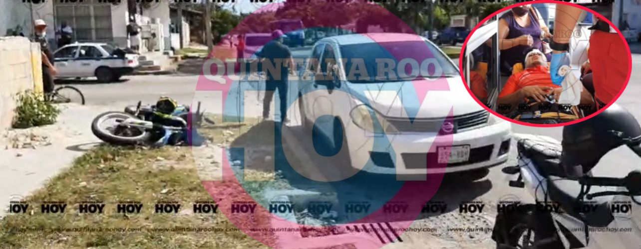 CANCÚN.-Un joven terminó con lesiones luego de que el conductor de un vehículo tipo taxi lo impacto en la Región 232, en la calle conocida como la “la torcasita”, en la Avenida Leona Vicario