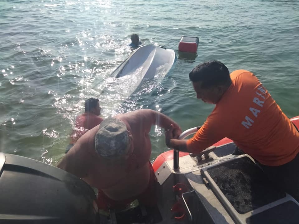 Chetumal Q. Roo.- La Secretaría de Marina en el ejercicio de la Autoridad Marítima Nacional a través de la Armada de México en funciones de Guardia Costera, informa que hoy, personal naval rescató a cinco personas, entre ellas un menor de edad, quienes se encontraban efectuando pesca deportiva en la Bahía de Chetumal.