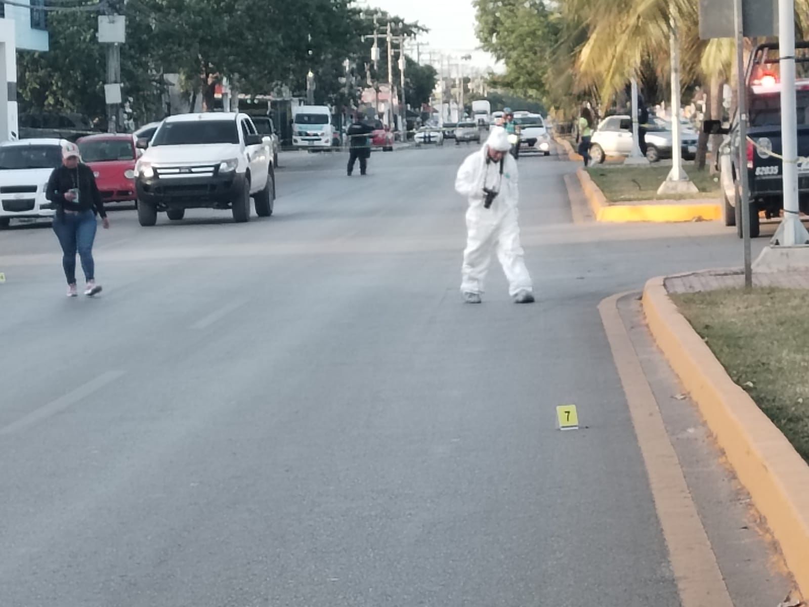 A este lugar arribaron peritos de la Fiscalía General del Estado, quienes lograron recabar al menos dos casquillos percutidos sobre la carpeta asfáltica.