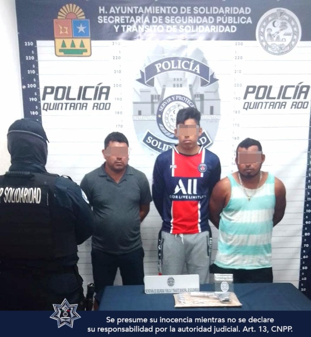 Cuando implementaban acciones para la prevención de delitos, Policías de la Secretaría de Seguridad Pública y Tránsito Municipal de Solidaridad, aseguraron a tres sujetos, un arma de fuego y una camioneta, en la colonia Centro.