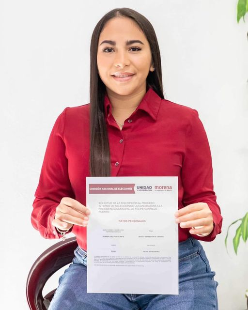 A través de redes sociales, la alcaldesa, quien también es pareja de la dirigente estatal de Morena, y cuñada de la presidente municipal de Othón P. Blanco, aseguró que tomó la decisión de inscribirse en el proceso interno de este partido “por amor” a la Zona Maya.