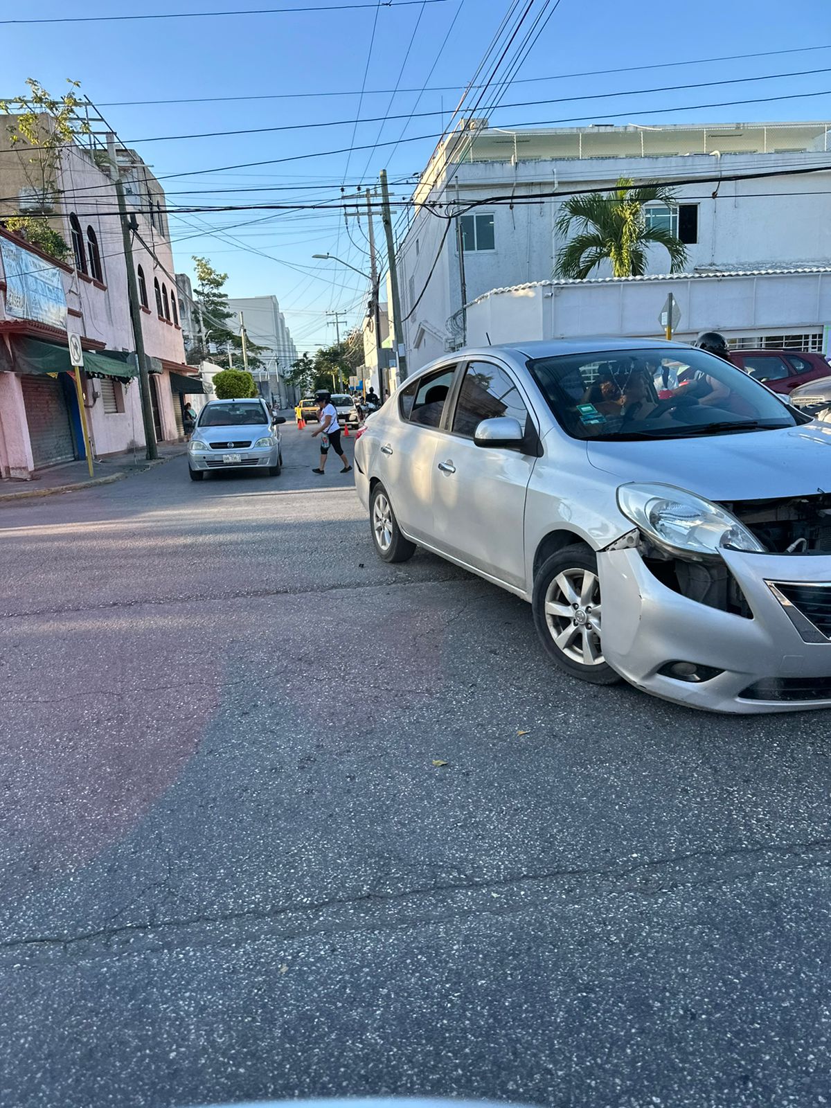 Al parecer, la conductora del auto Versa, al tratar de ganarle el paso a la moto, hizo que esta unidad se impactara en su contra, aunque sin tanta fuerza.