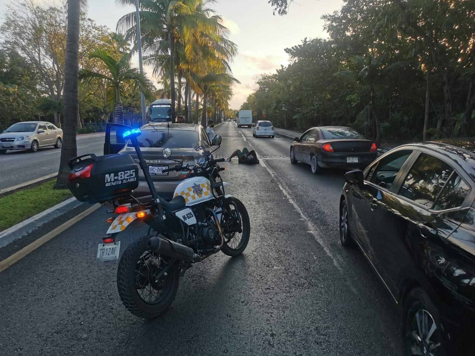 CANCÚN.-Un motociclista derrapó la mañana de hoy en la Zona Hotelera en el kilómetro 15 de Bulevar Kukúlcan, para evitar arrollar a un ciclista.