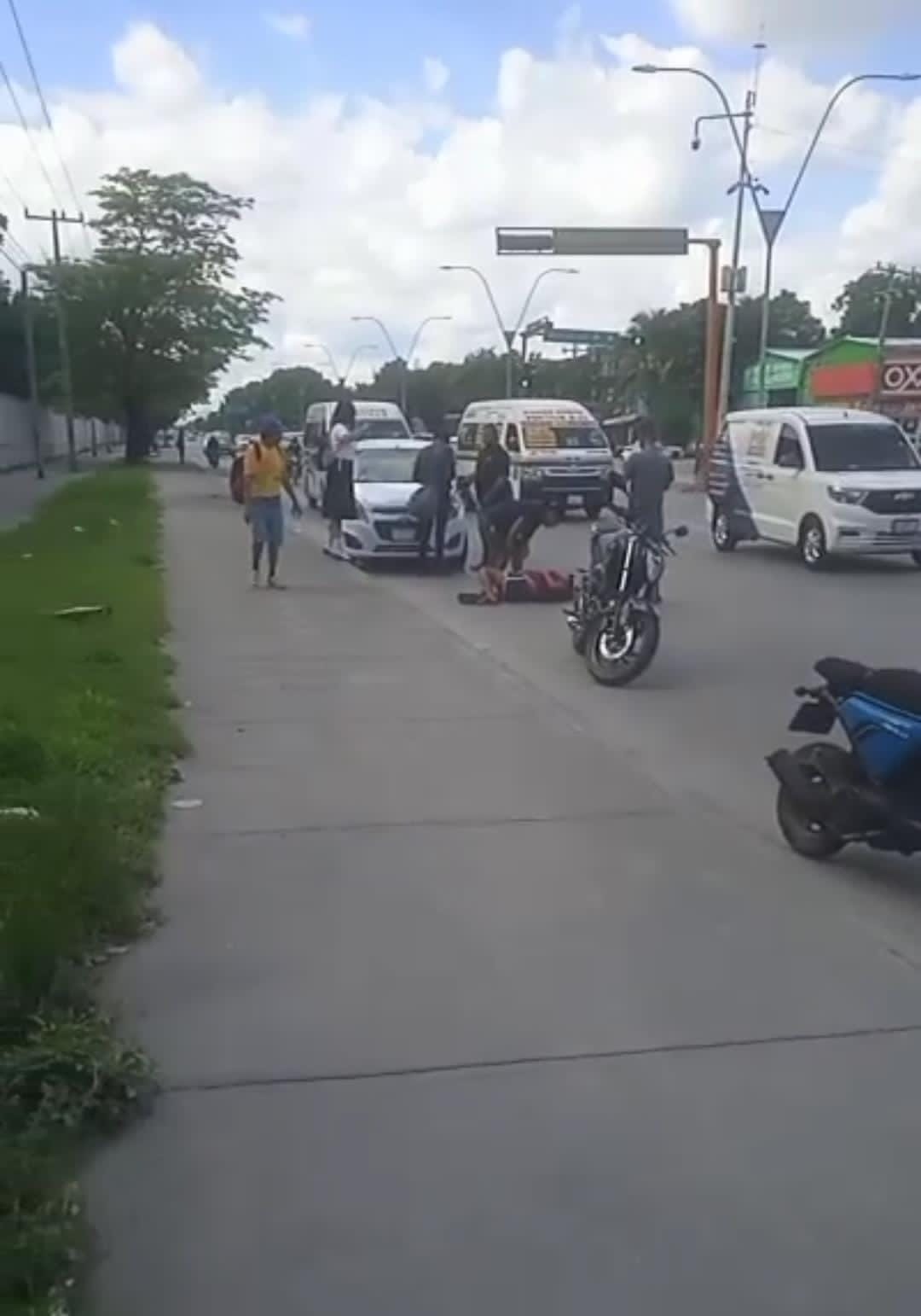 CANCÚN.- La imprudencia de motociclista casi le cuesta la vida en la avenida José López Portillo a la altura del batallón de infantería en Cancún.
