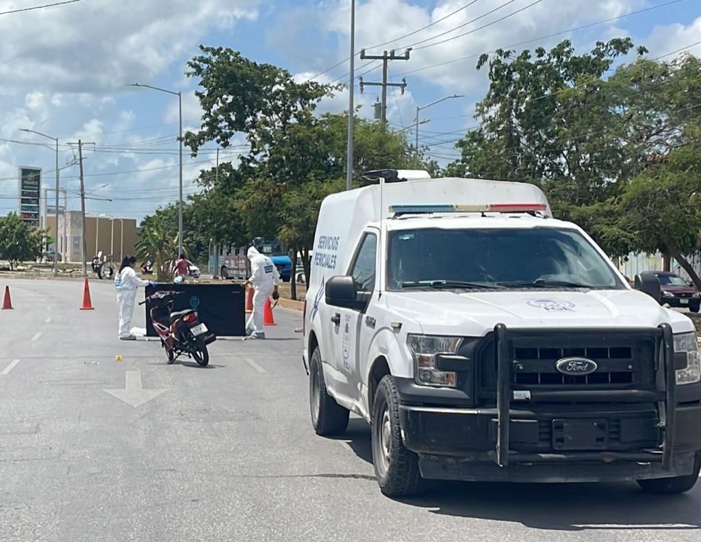 Cancún.- Partes del cuerpo de un motociclista terminaron sobre la carpeta asfáltica de la avenida Lakín de esta ciudad, luego que fuera embestido y aplastado esta tarde por un autobús de personal de la empresa LIPU.