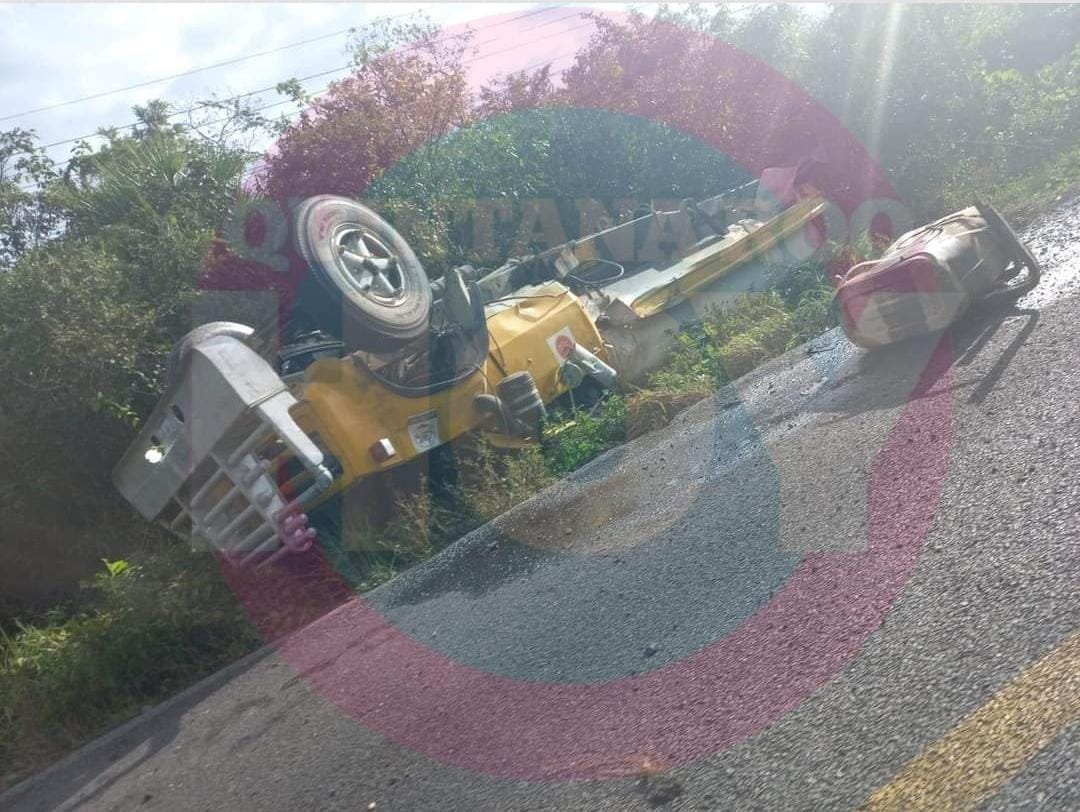 Cancún.- El conductor de una pipa falleció esta tarde, luego que su vehículo volcara y acabara él prensado, en la carretera federal Cancún-Mérida, a la altura de Nuevo Xcan, en el municipio de Lázaro Cárdenas.