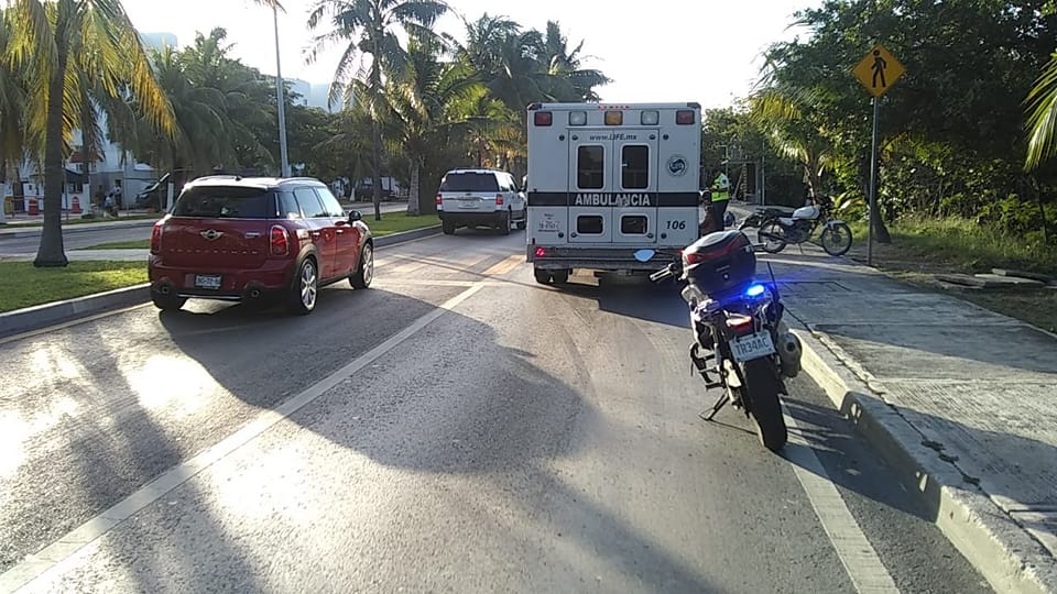 Una mujer resultó lesionada esta mañana alrededor de las 8:00 am luego de ser arrollada por un motociclista en la Zona Hotelera a la altura del kilómetro 2.5.
