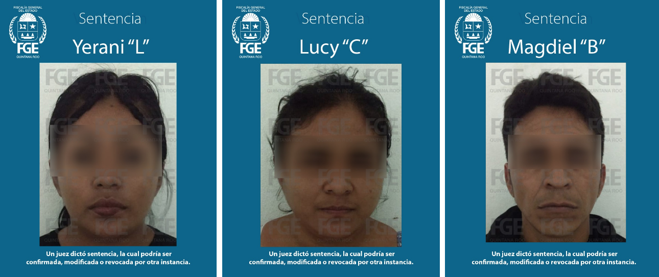 Los ahora sentenciados son Lucy C”, Yerani “L” y Magdiel “B”, a quienes además el juez les impuso multa por un monto de 282 mil 360 pesos a cada uno.