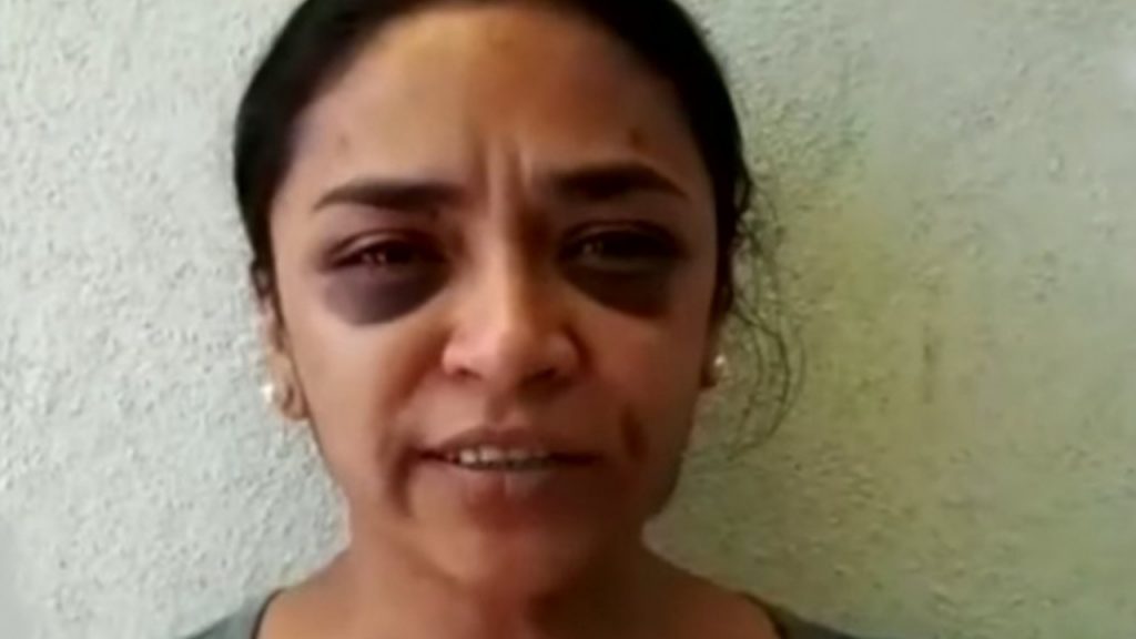 Sin embargo, los policías, lejos de ayudarla la GOLPEARON.