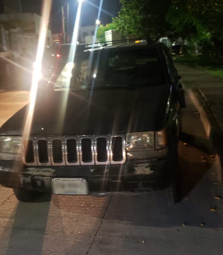 Se trata de una camioneta color negro, marca Jeep, Grand Cherokee, con placas de circulación utw894e, del Estado de Quintana Roo, la cual fue asegurada luego que elementos policiales que realizaban labores preventivas, recibieron el reporte que dicho vehículo circulaba con personas armadas a bordo.