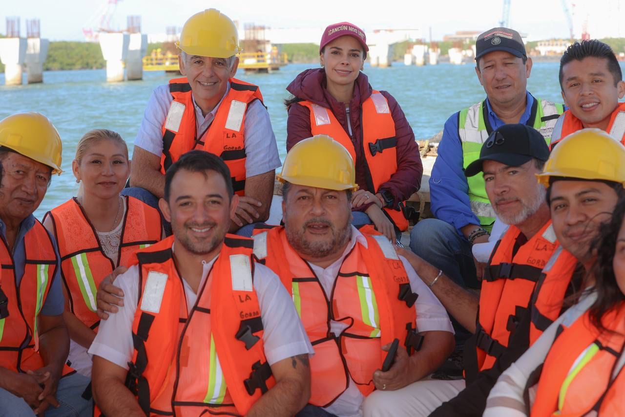 CANCÚN.- Como muestra del respaldo y el trabajo coordinado del Cabildo de Benito Juárez para el desarrollo de obras en conjunto con el Gobierno de México y Gobierno del Estado, autoridades municipales e integrantes del mismo realizaron una visita de inspección a la obra del Puente Vehicular Nichupté, que se concreta en Cancún con una inversión de más de siete mil millones de pesos.