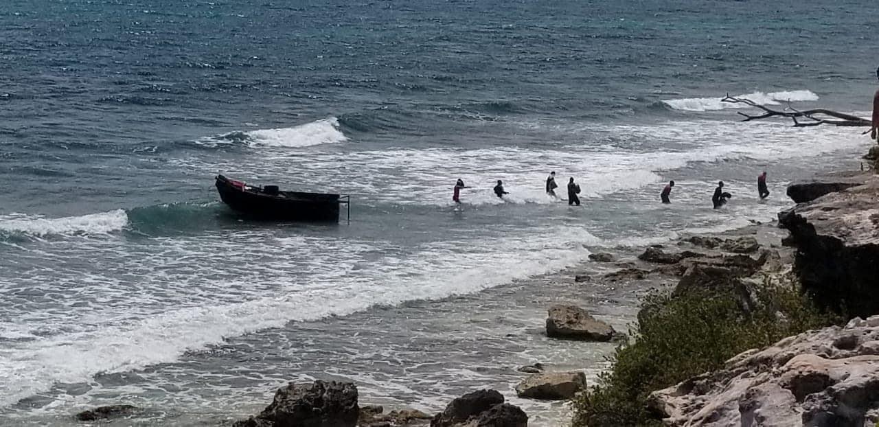 ISLA MUJERES.- La mañana de hoy recaló en Isla Mujeres un grupo de personas de origen cubano frente a la playa del inmueble Isla 33.