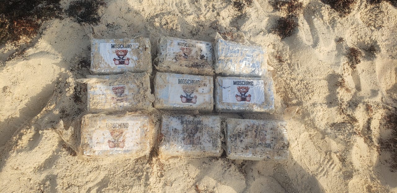 El enervante fue descubierto en la costa, entre los vestigios mayas denominados ‘Castillo Real” y playa arrecifes. Todos tenían una imagen de un oso de peluche y la leyenda “Moschino”. Su valor comercial se estima en dos millones de pesos.