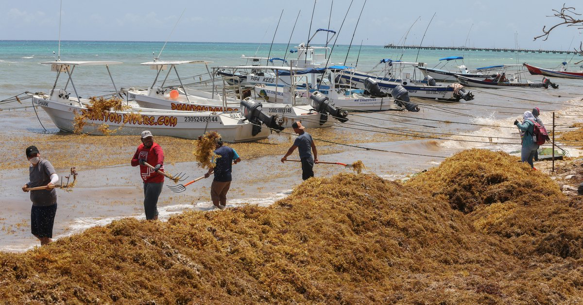Playa del Carmen.- El incremento de sargazo en las costas quintanarroenses de Puerto Morelos a Tulum, ha puesto en aprietos al sector náutico de la zona.