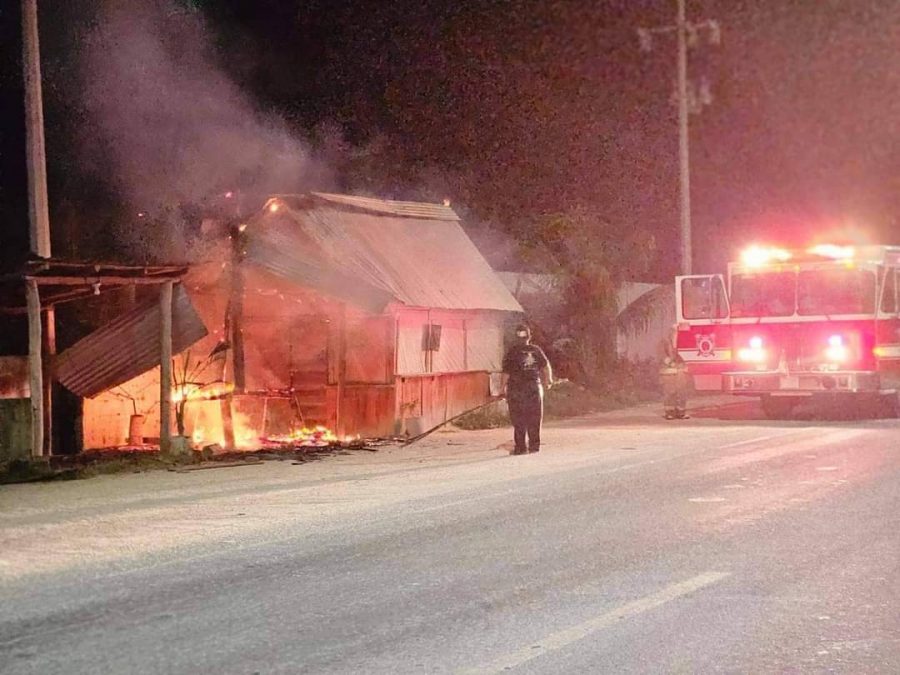 CHETUMAL.- Una pequeña estructura hecha de madera y láminas de zinc, que era utilizada para vender comida a la orilla de la carretera federal que va hacia Bacalar, se incendió esta madrugada, en la localidad de Huy Pix.