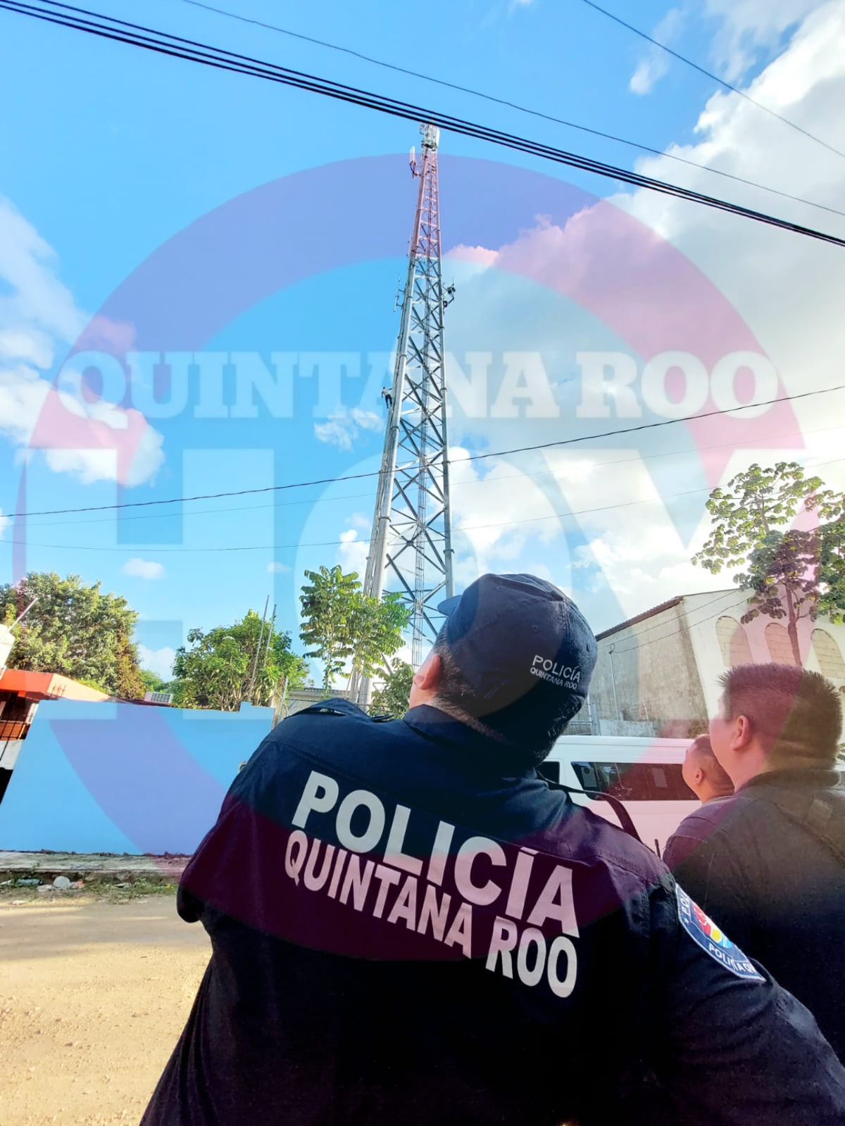 CANCÚN.- Un masculino fue rescatado la tarde de hoy en la calle zafiro en la región 531, conocida como El Pedregal, luego de que se intentara lanzar desde una torre de telefonía con tal de evadir a las autoridades.
