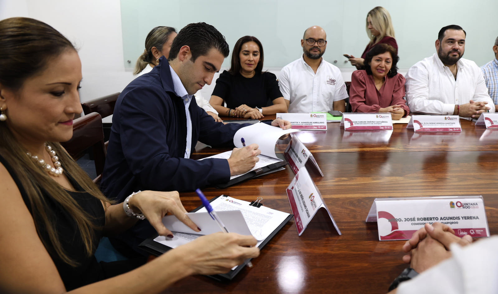 Segura Vázquez también firmó un convenio de colaboración en materia de transparencia con el Instituto de Acceso a la Información Pública y Protección de Datos Personales de Quintana Roo (IDAIPQROO), representado por su Comisionada Presidenta, Magda Lozano Ocman y los Comisionados Roberto Agundis y Claudette Arellano.
