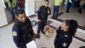 Apoyados con perros adiestrados en localización artefactos, unos 40 elementos de la Policía Federal recorrieron pasillos, locales comerciales, baños, salas de cine y otras zonas del inmueble, ubicado entre las avenidas Tulum y Bonampak, hasta determinar que se trató de una falsa alarma, la segunda en unos meses.