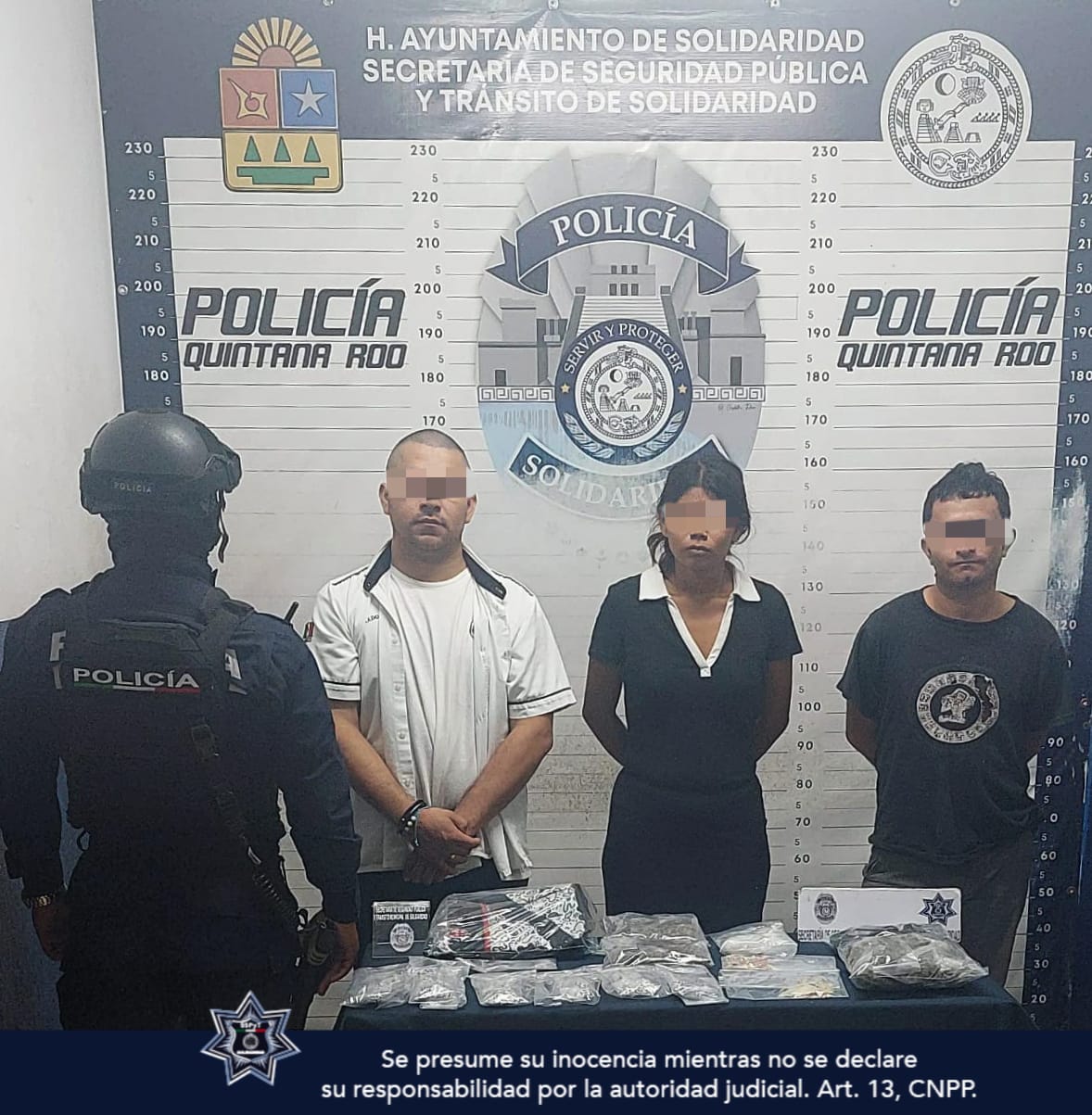 PLAYA DEL CARMEN.- Policía Municipal de Solidaridad da golpe al narcomenudeo con el aseguramiento de 3 personas y más de 125 posibles dosis de diversos narcóticos.