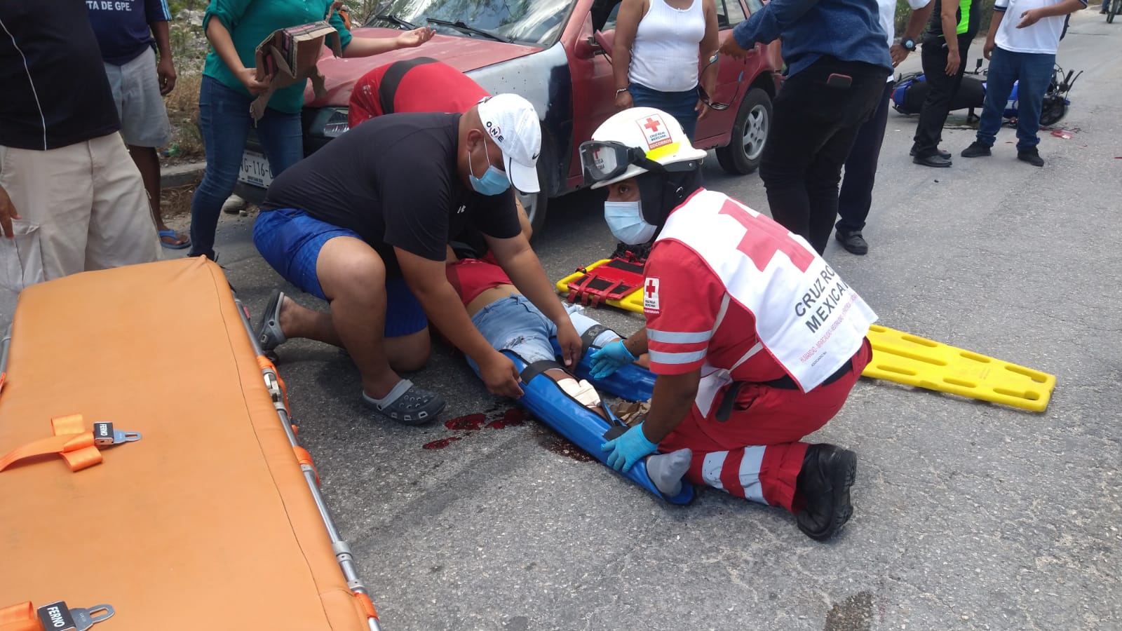 CANCÚN. CON las piernas fracturadas terminó un joven motociclista, quien por alcance chocó con un vehículo sobre el periférico a la altura de la Región 247 de Cancún.