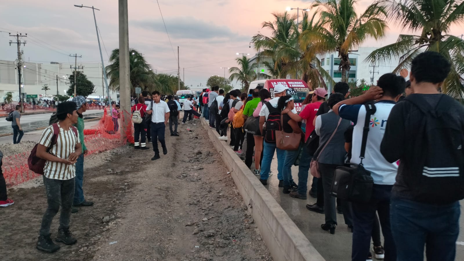 En ese lugar, ubicado sobre la avenida Tulum, los usuarios, en su mayoría trabajadores de la Zona Hotelera, realizan largas filas para poder abordar el transporte público, cuyas unidades tardan hasta una hora en pasar, generando largas filas.