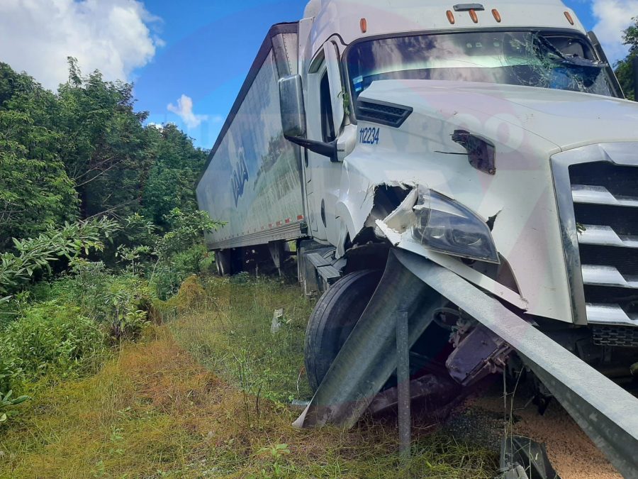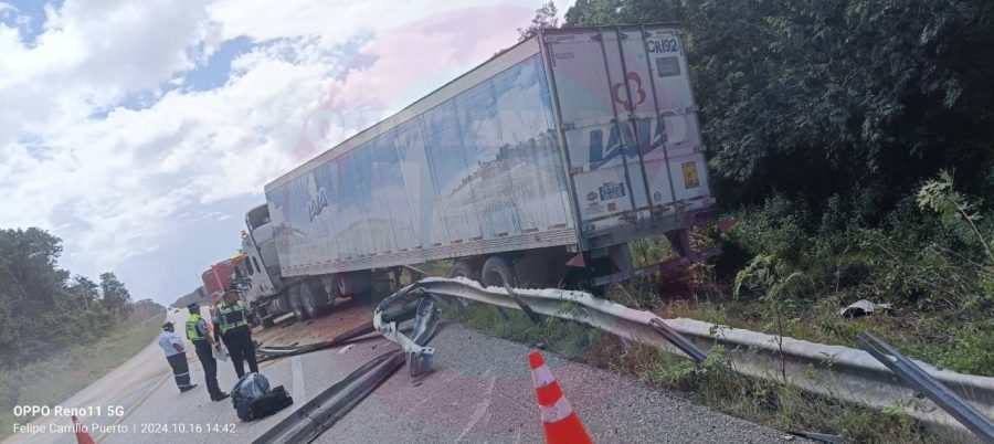 Felipe Carrillo Puerto.- Trailero sufre lesiones al salirse de la carretera, cerca de entronque a la comunidad de Chumpon, en el tramo carretero Felipe Carrillo Puerto-Tulum.