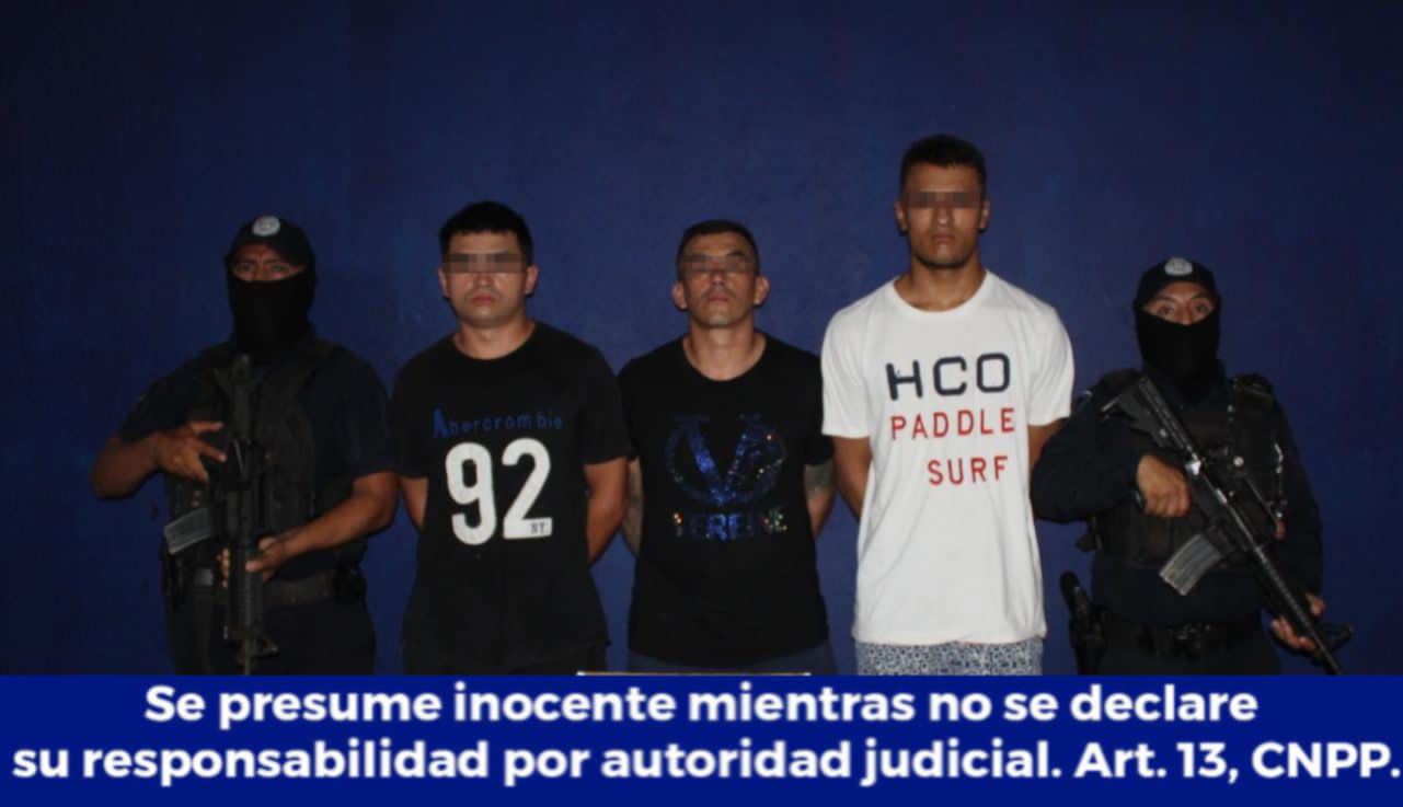 La Secretaría de Seguridad Pública Quintana Roo logró la detención de Hugo Armando “N.”, Juan Camilo “N.” y de Cristhian Felipe “N.”, todos originarios de Colombia, por su presunta participación en delitos contra la salud y violación a la Ley Federal de Armas de Fuego y Explosivos.