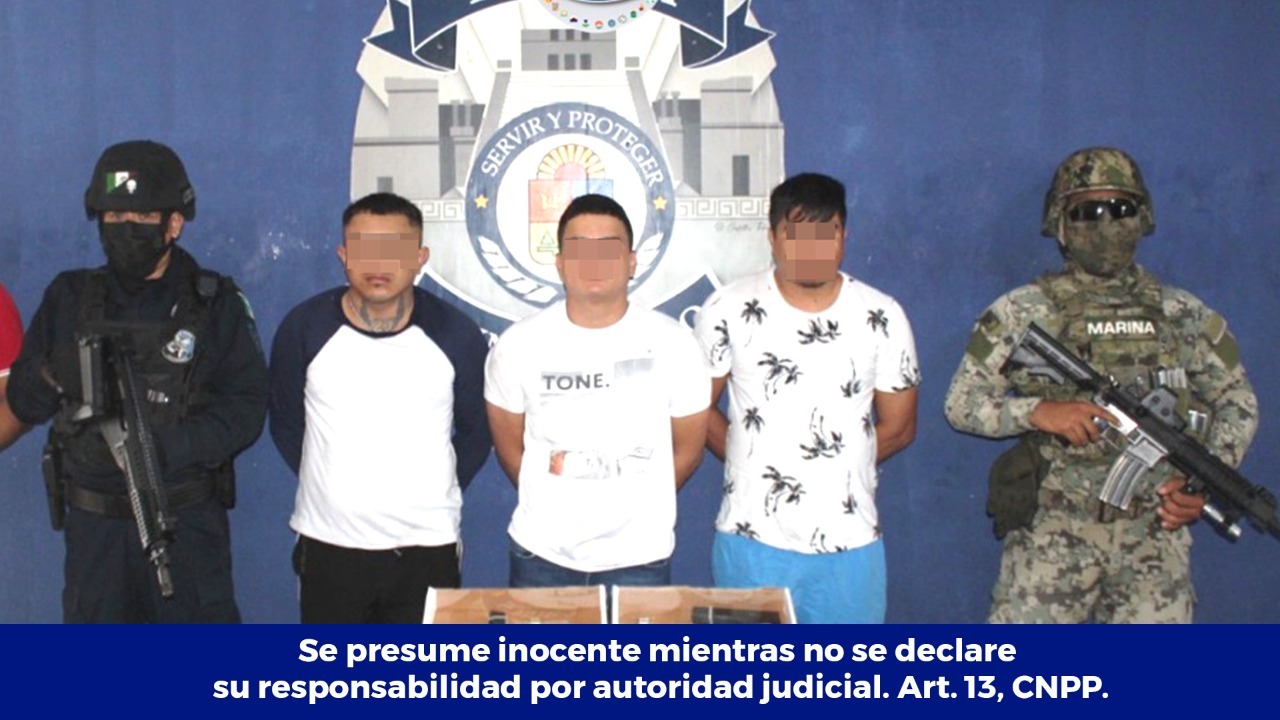 La Secretaría Municipal de Seguridad Pública informó a través de un comunicado de la detención de Gustavo Adolfo “N”., José Ángel “N”. y Leonel “N”., quienes fueron vistos en el estacionamiento de la Multiplaza Arco Norte, ubicada en la Región 255 de Cancún.