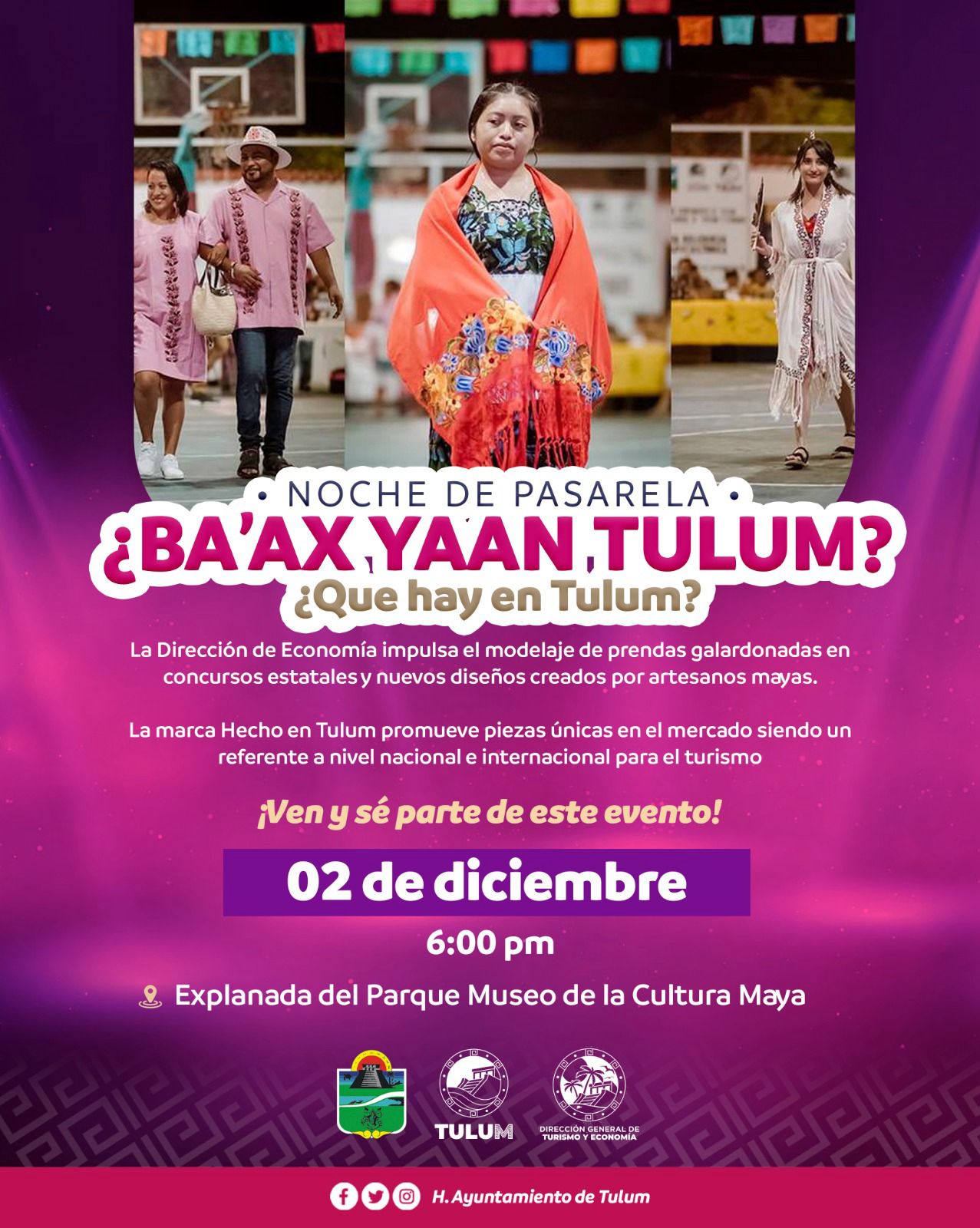 TULUM.- El Ayuntamiento de Tulum a través de la dirección de Economía, prepara la gran noche de pasarela 2023, en la que destacará la marca “Hecho en Tulum”, proyectando prendas artesanales, diseños de moda y únicas en el mercado turístico.