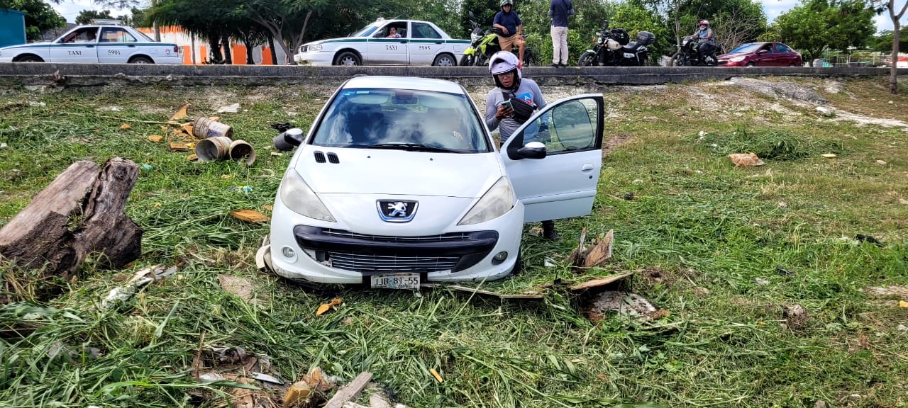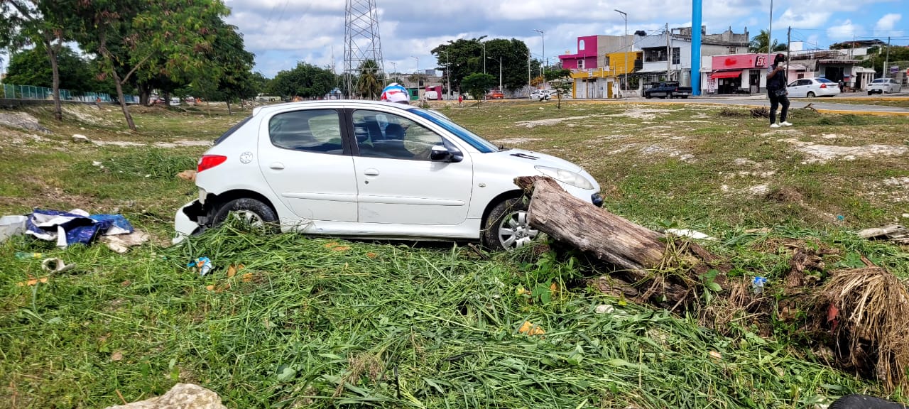 CANCÚN- Automovilista por ir a exceso de velocidad perdió el control del volante de su unidad y terminó fuera de la cinta asfáltica, dejó una persona lesionada sobre la avenida Chac Mool con calle 46 a la altura de la región 100 en Cancún.