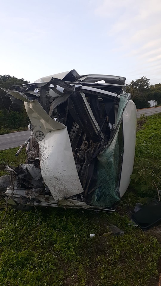 Un aparatoso accidente se registró esta mañana de domingo sobre la carretera Cancún- Playa del Carmen, luego de que una van de turismo volcara antes de llegar al Hotel Vidanta.