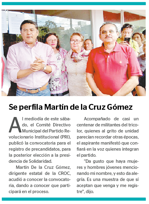 En tanto, para encabezar la posible coalición del PRI y el Verde Ecologista (PVEM)- Panal, los nombres que más suenan son los del líder estatal de la CROC, Martín De la Cruz Gómez, por el partido tricolor y el diputado local Carlos Toledo Medina, por el partido del tucán.