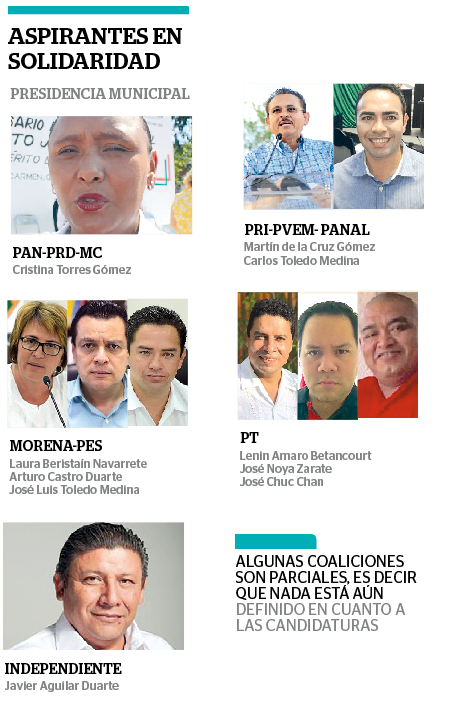 En la coalición del PAN, PRD y Movimiento Cuidadano está aún está por definirse entre Jesús Zetina Tejero, Perla Tun y Rubén Tapia.