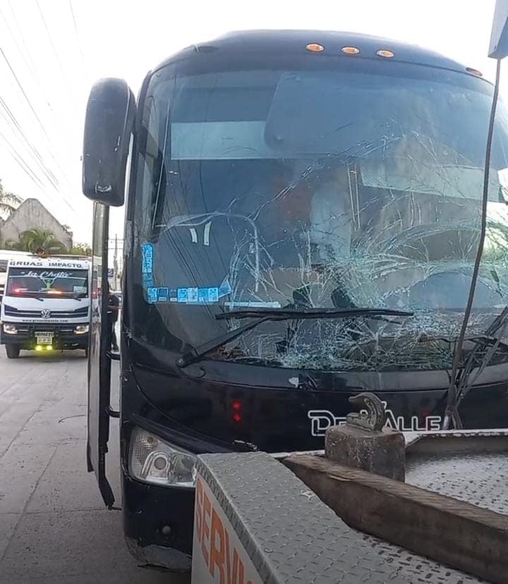 De acuerdo con primeros datos, el conductor del autobús Del Valle circulaba a exceso de velocidad, hasta que por un descuido terminó impactado por detrás a una Van de transporte turístico, de color blanca.