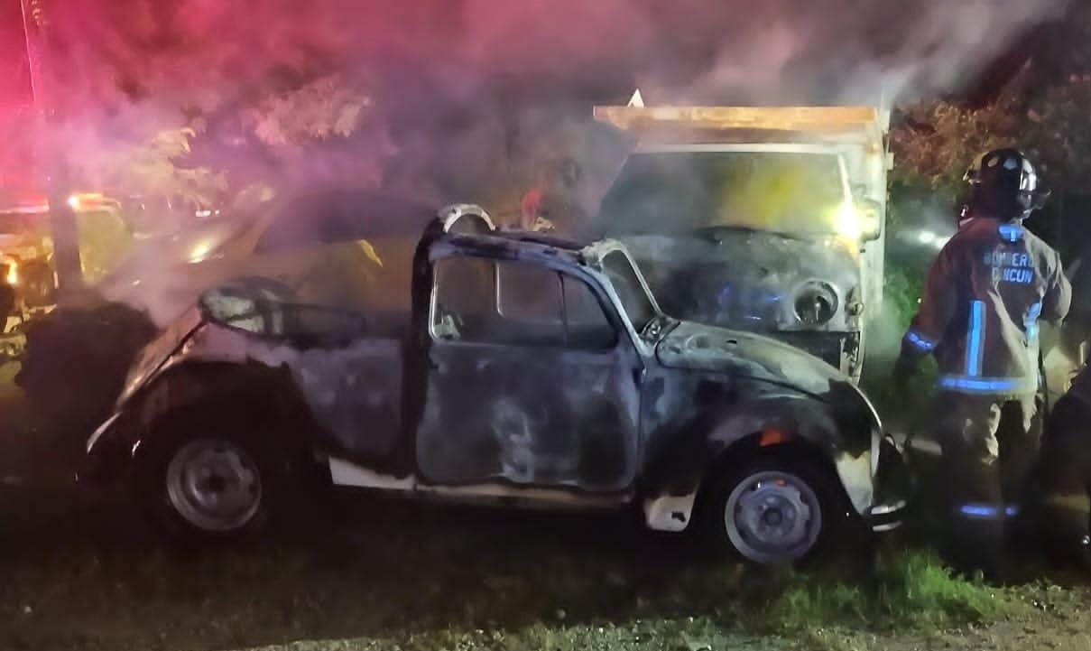 CANCÚN.- En una pronta respuesta a la llamada de emergencia, el Cuerpo de Bomberos de la Dirección General del Heróico Cuerpo de Bomberos atendió un incendio de vehículo reportado la madrugada, el siniestro tuvo lugar en la región 317, Manzana 16, Villas Marino.
