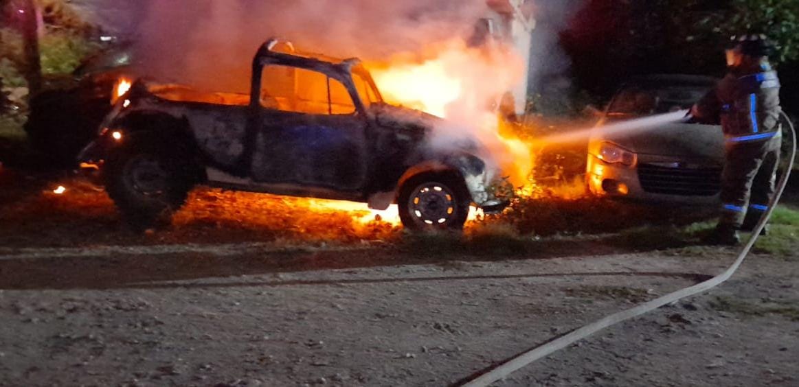 Al llegar al sitio, se encontraron con un vehículo compacto que estaba siendo devorado por las fuertes llamas.
