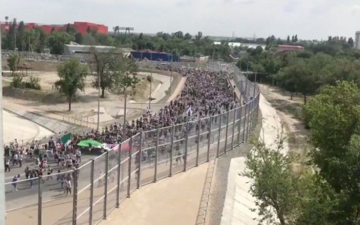 Moscú, Rusia.- A unos minutos de que arranque el segundo partido de la Selección Mexicana en la Copa del Mundo, contra Corea del Sur, miles de aficionados mexicanos ingresan al estadio Rostov.