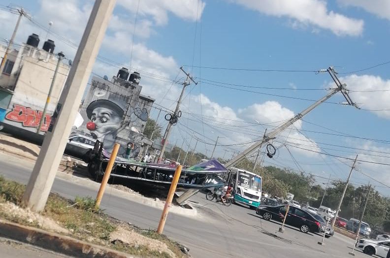 En tanto, en la Av. Ciénega en la Región 200 un árbol resultó derribado por el viento; se han detectado 3 espectaculares que se encontraban tirados sobre la vía de rodamiento en la Av. 135 con Av. Huayacán, en la Av. Cobá con Av. La costa y el último en la Av. Lak’In con Av. Margarita en donde un poste de electricidad también sufrió afectaciones.